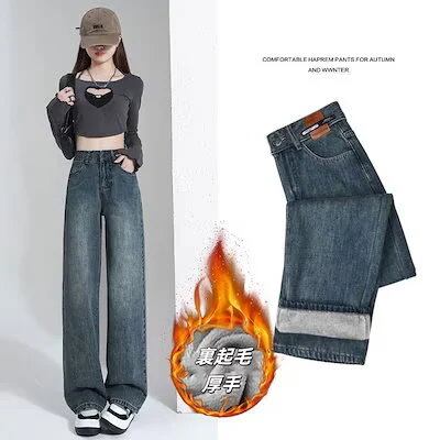 【2枚購入で 2oo円OFF!】レディースジーンズ 裏起毛 厚手 暖かい ハイウエスト ロングパンツ デニムボトムス ロングデニム スキニーパンツ ワイドパンツ 裏起毛ファッション デニムパンツ