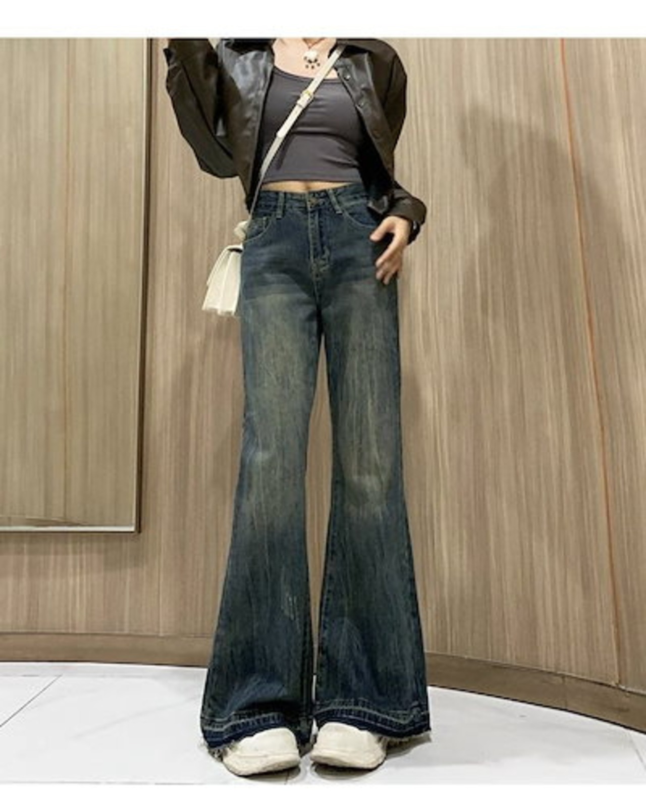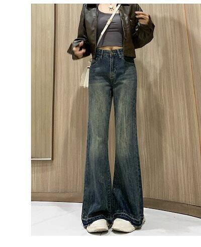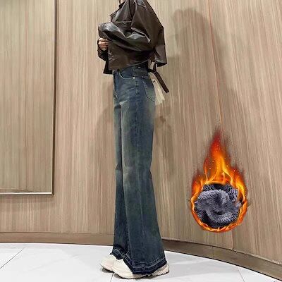 大きいサイズ デニムフレアパンツ 美脚 デザイン ワイドパンツ レディース トレンド ゆったり 無地ジーンズ 厚手 裏起毛