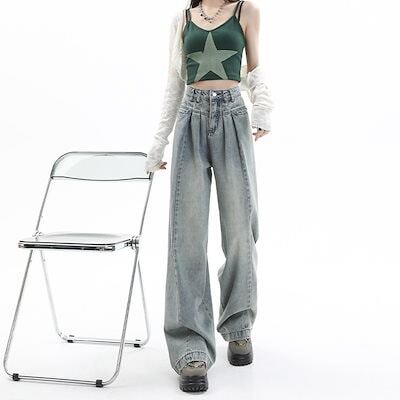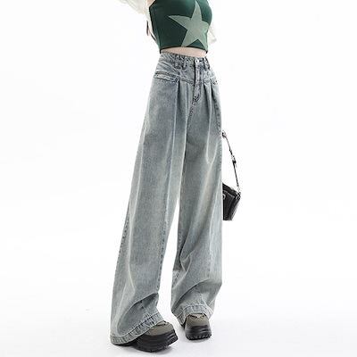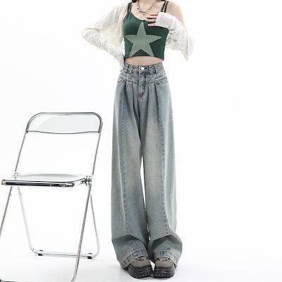 かっこいい!スラックスパンツ2025春の新作ハイウエスト デニムパンツ レディース ワイドレッグ 見えやせ ハイウエストゆったり 垂れ感 おしゃれ