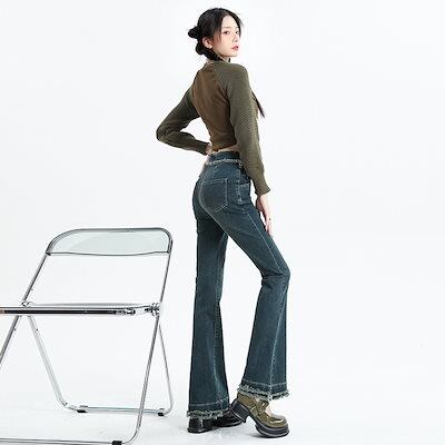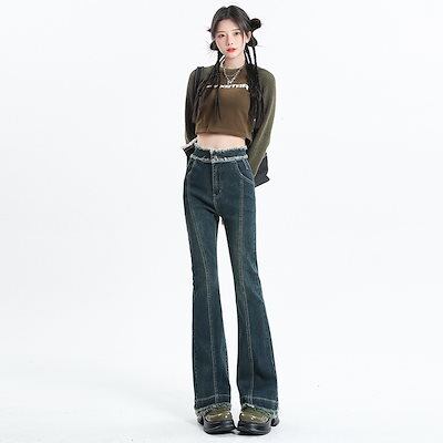 かっこいい!スラックスパンツ2025春の新作ハイウエストマイクロラッパ デニムパンツ おしゃれ パンツ レディース ワイドレッグ ゆったり 見えやせ カジュアルパンツ 垂れ感