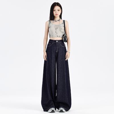 かっこいい!スラックスパンツ2025春 デニムパンツ おしゃれ パンツ レディース 垂れ感 ワイドパンツ アメリカンレトロ ハイウエストでゆったり 見えやせ カジュアルパンツ