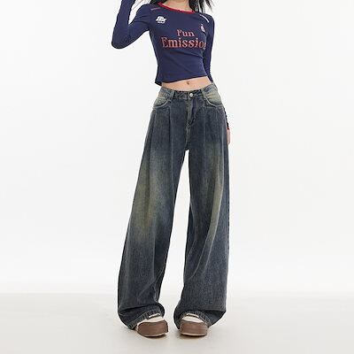 かっこいい!スラックスパンツ2025春 ホワイトワイドパンツ デニムパンツ おしゃれ ハイウエストゆったり見えやせ パンツ レディース 垂れ感