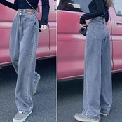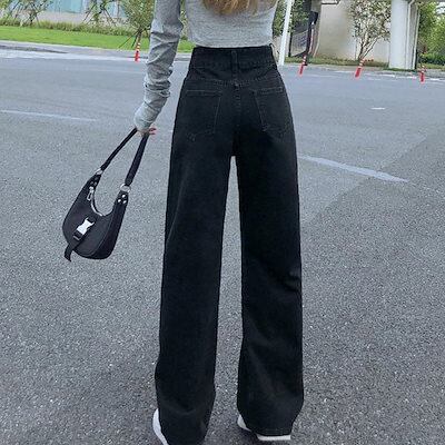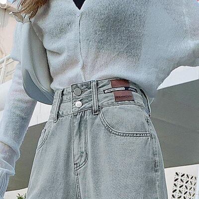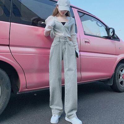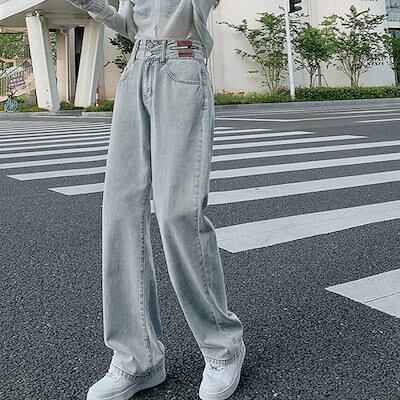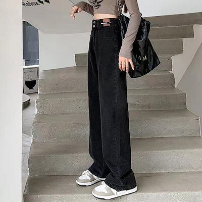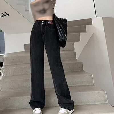 脚長効果!デニムパンツ ストレート セミワイドパンツ ファッション