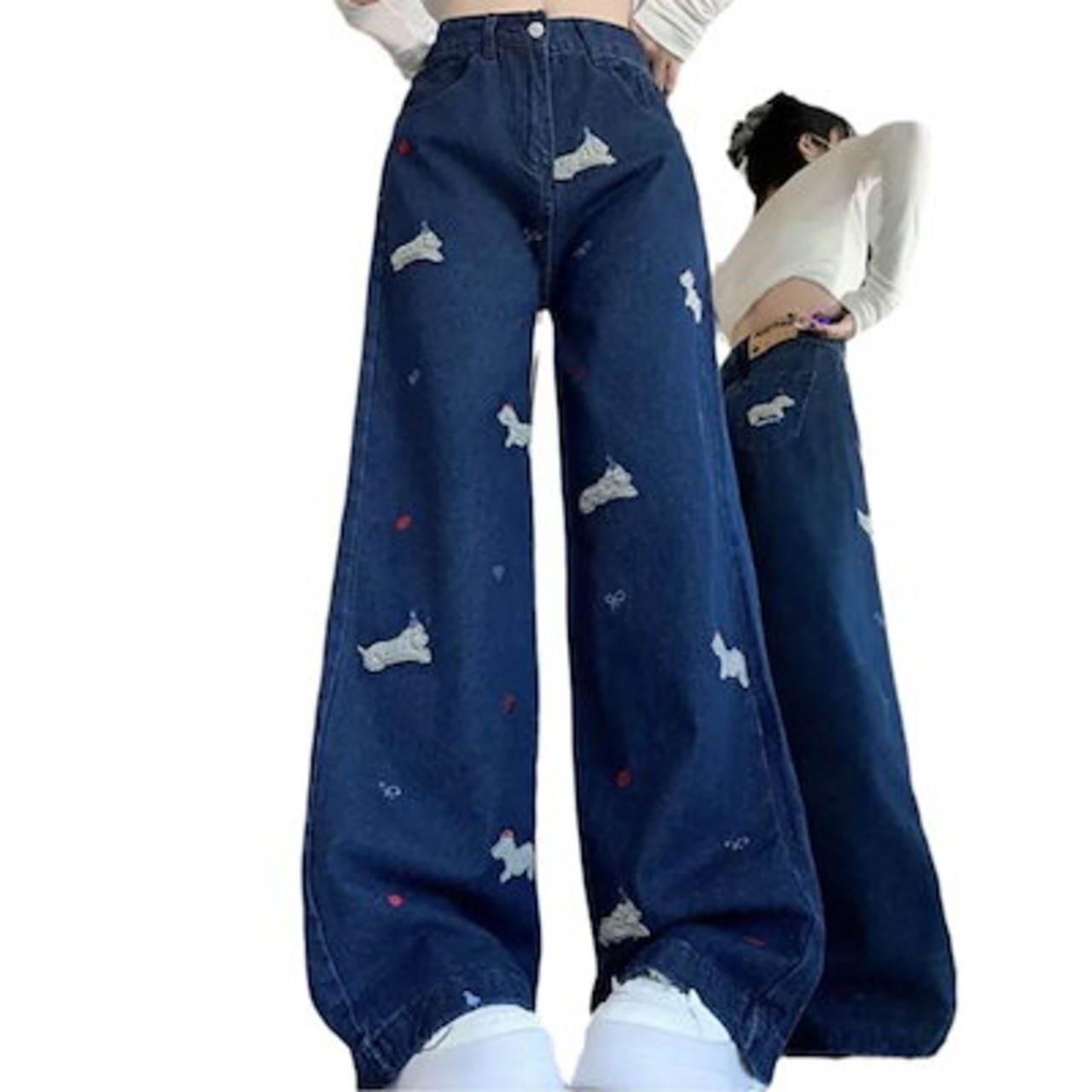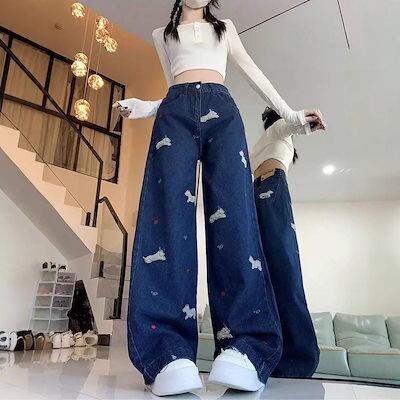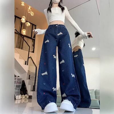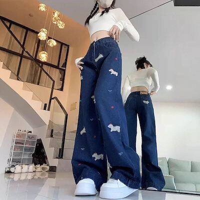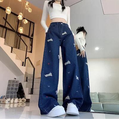 ハイストリートジーンズ 春秋 新作 ハイストリート ハイウエスト ジーンズ レディース ルーズ ストレート デザイン ワイドパンツ ?国ファッション