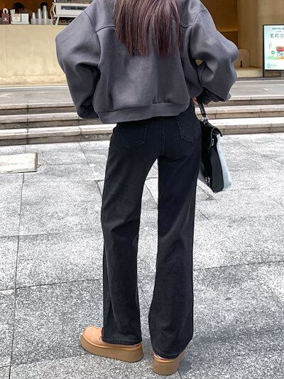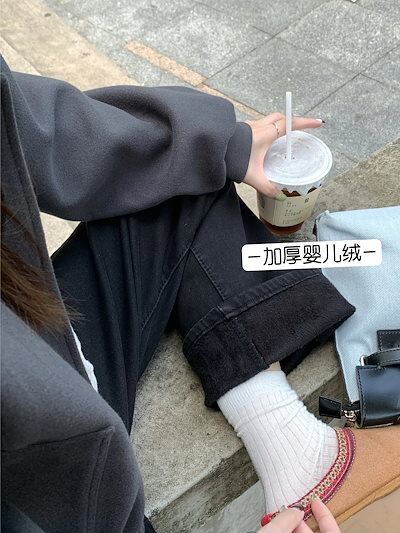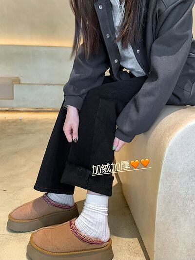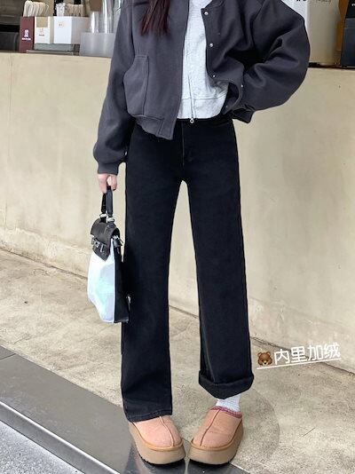 2024秋冬 防寒 あったか 厚手 2TYPE パンツロング丈ストレートハイウエストゆったり 脚長美脚細見え春カジュアル黒白韓国系ファッションレディースおしゃれ かわいい衣装トラック