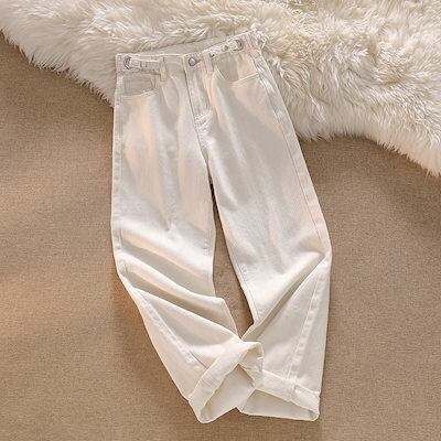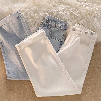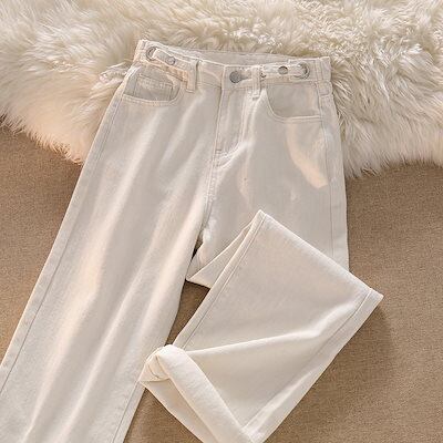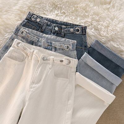 2024新作 新商品 ホワイト 高腰 ジーンズ レディース 薄い デザイン感 ゆったり カジュアル ワイドパンツ ジョガーパンツ