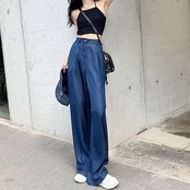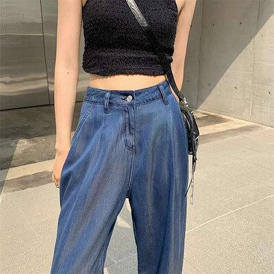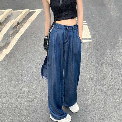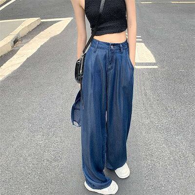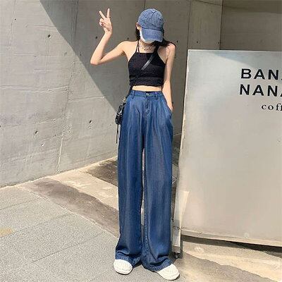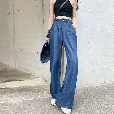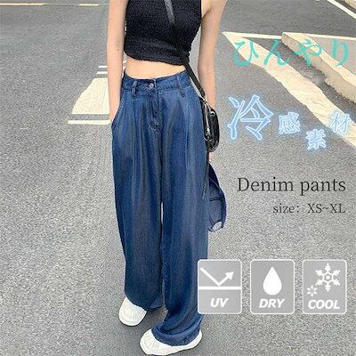 2024新作 接触冷感 デニムパンツ パンツ レディース ワイドパンツ ワイド ストレート デニム ジーンズ ジーパン ゆるパンツ ズボン ボトムス 大きいサイズ ひんやり UV UVカット 薄手