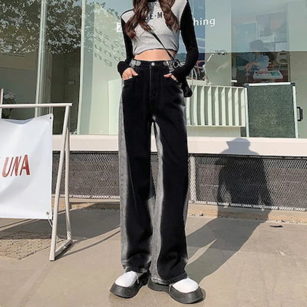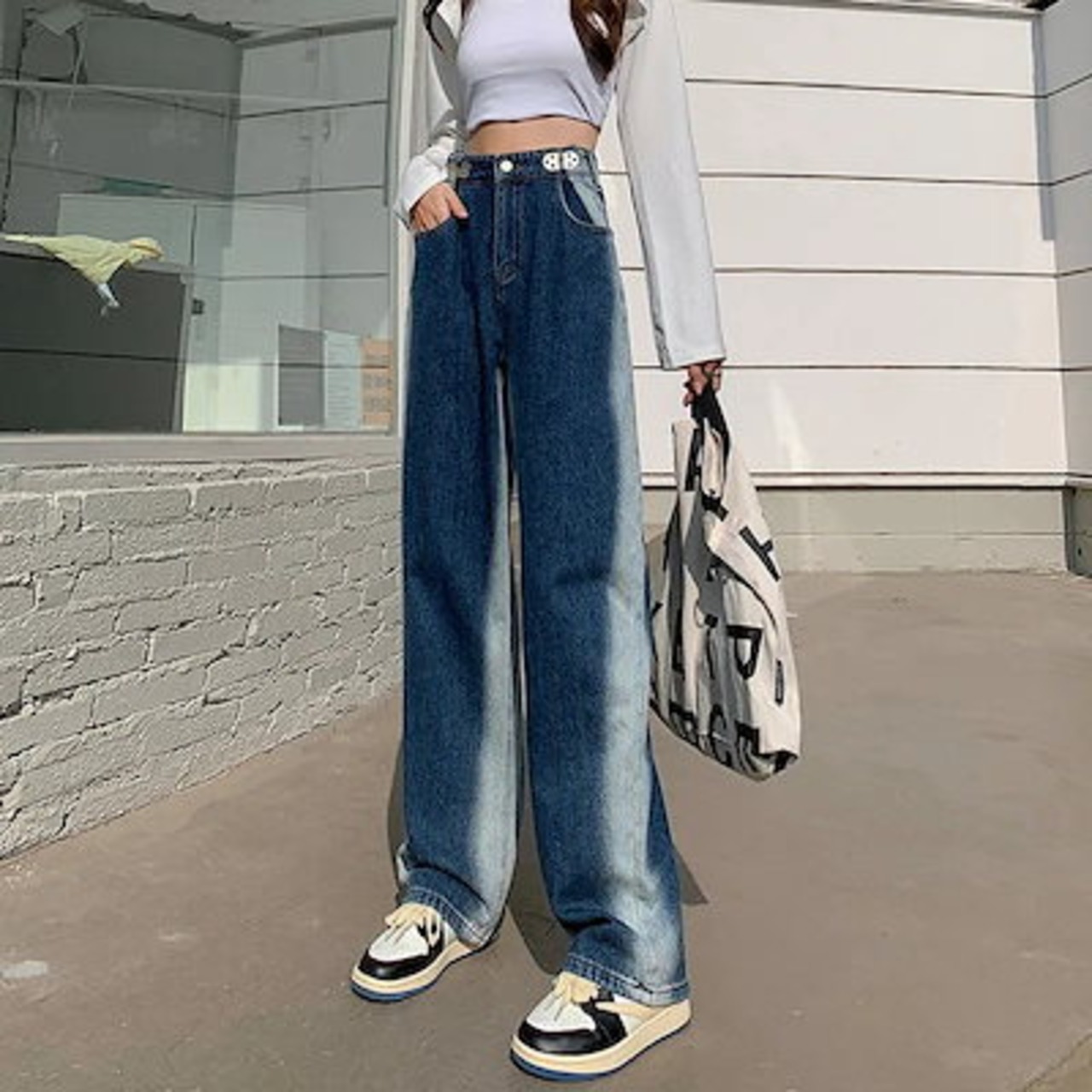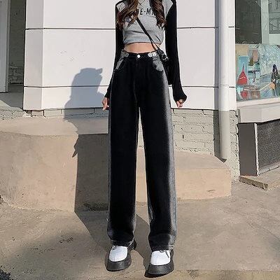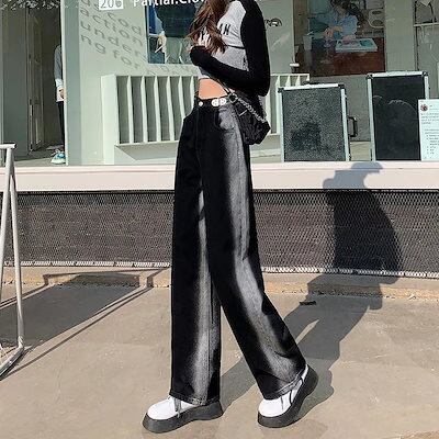 スラックスパンツ 今年も人気!グラーデション韓国ハイウエストレディースジーンズ ワイドパンツ