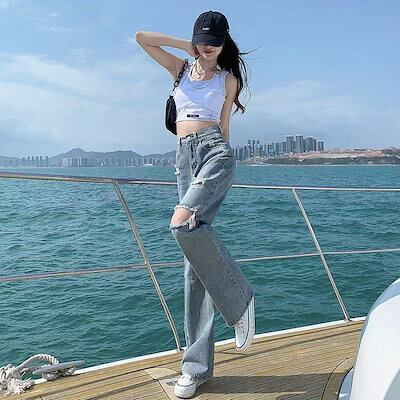 今年も人気!ダメージジーンズ ジーパンレディース ハイウエスト ワイドパンツ 百掛け大きいサイズ