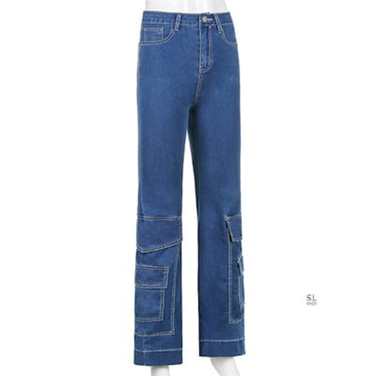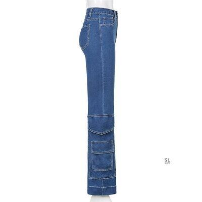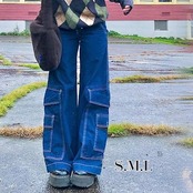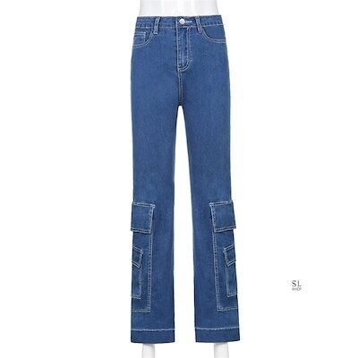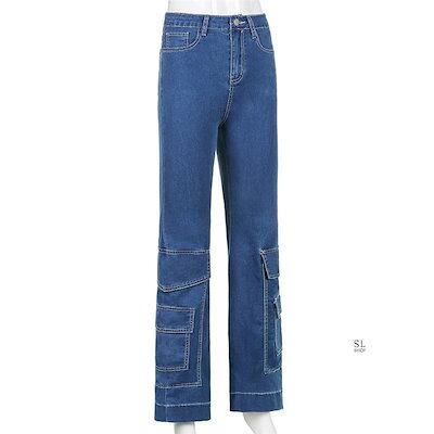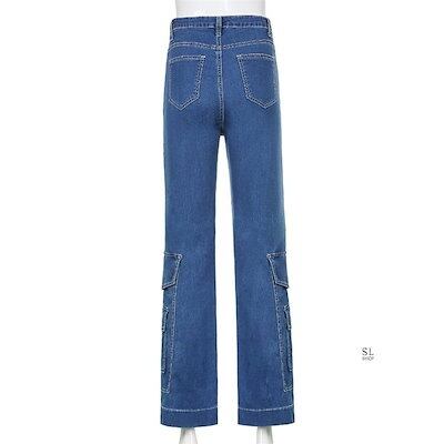 パンツ レディース デニムパンツ カーゴパンツ ジーンズ おしゃれ ワイド裾 ロング丈 カジュアル