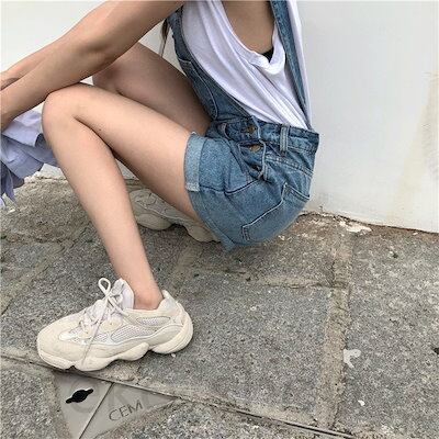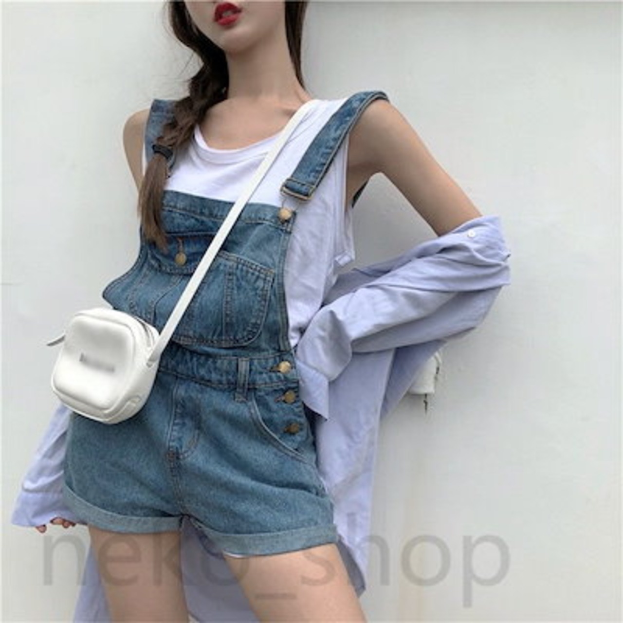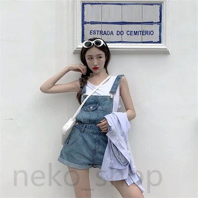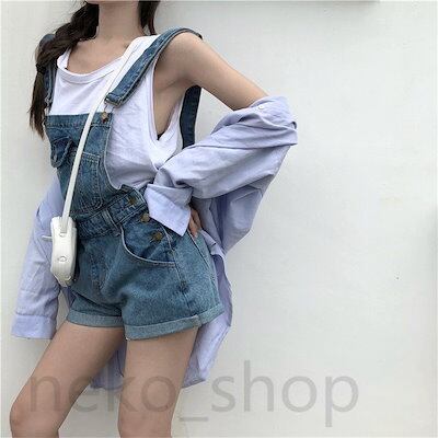ハイウエスト デニム ショートパンツ レディース オーバーオールサロペット 短パン ワイドパンツ オ