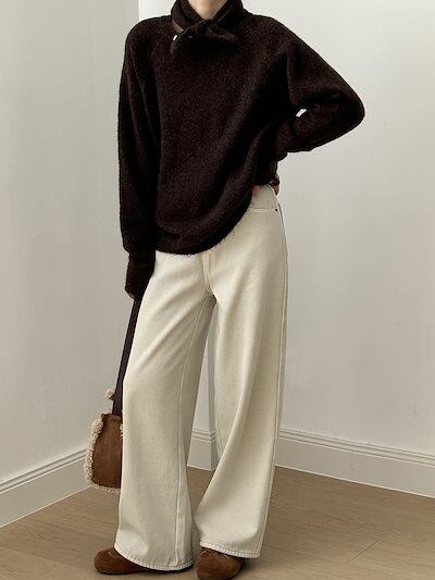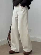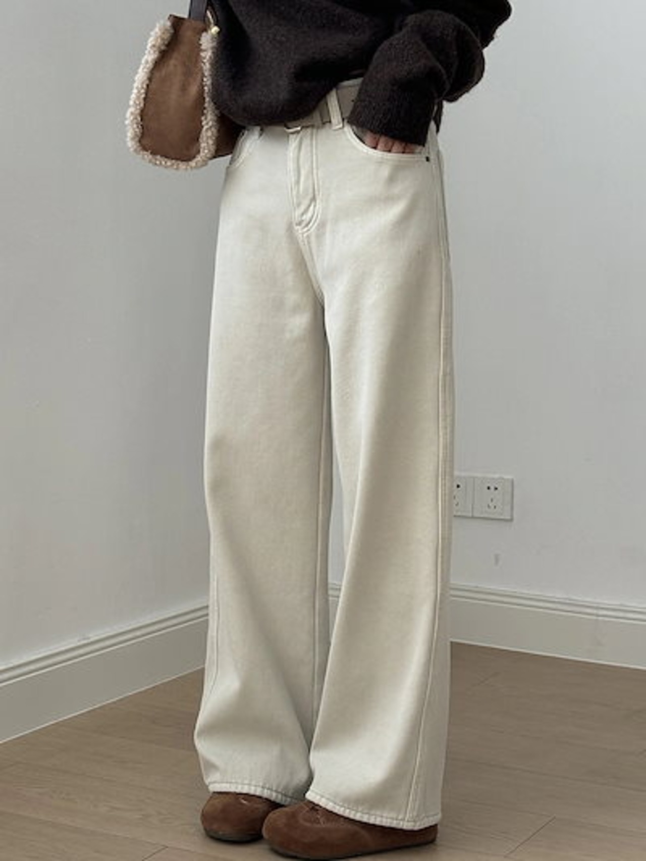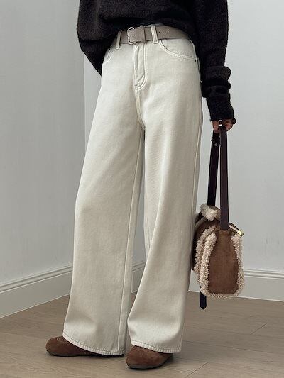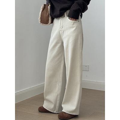 ハイウエスト ストレート パッド入り ジーンズ レディース 2024 冬 ゆったり カジュアル ワイドパンツ ベルト付き