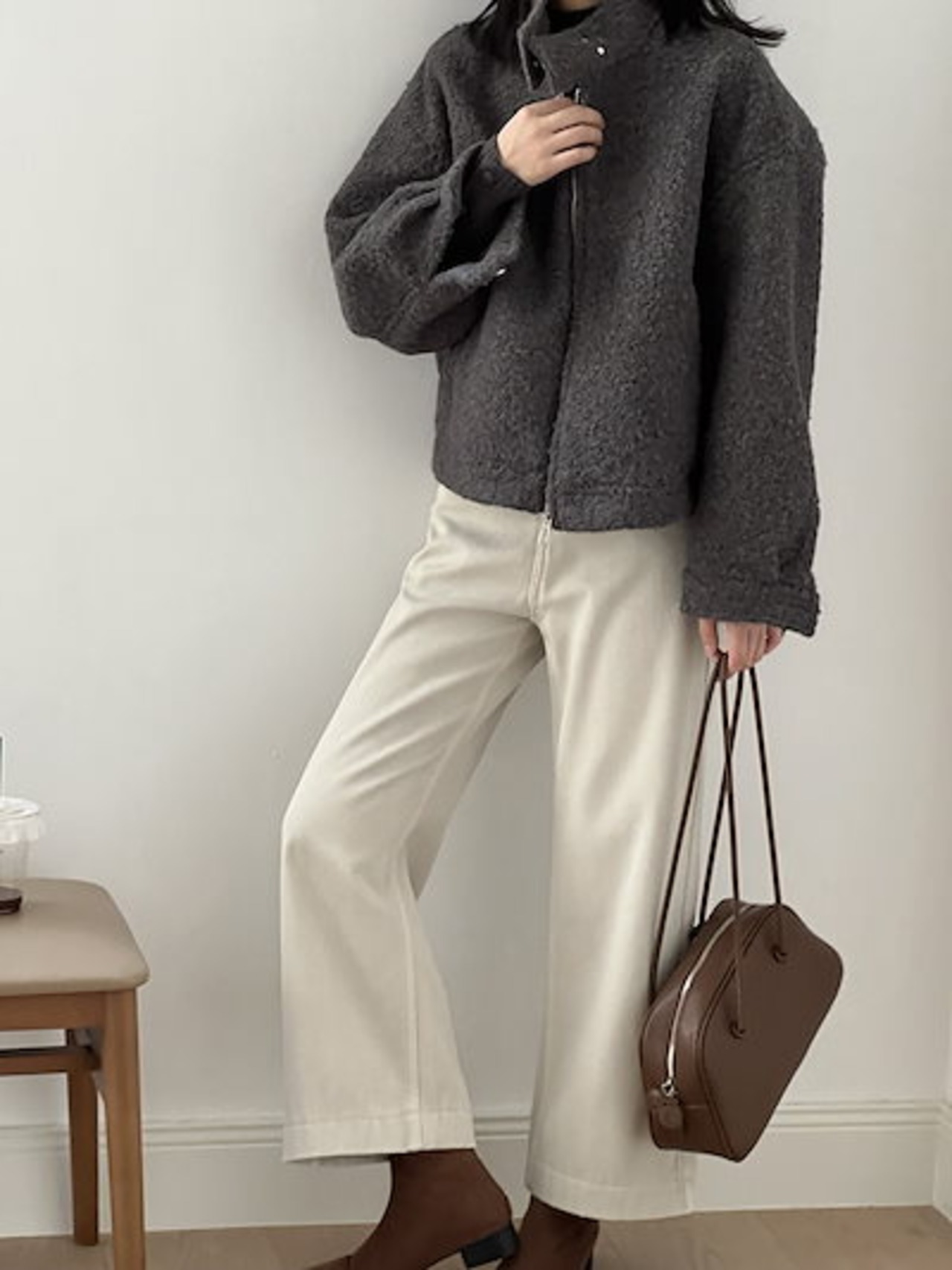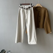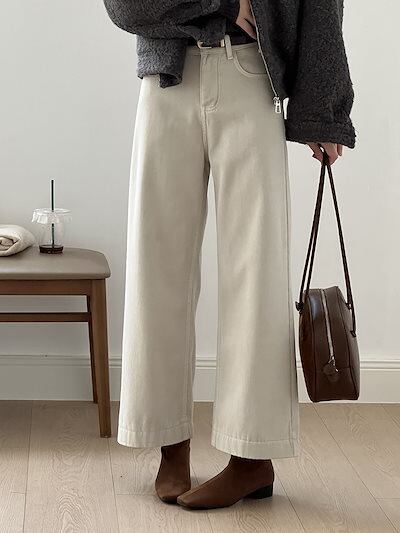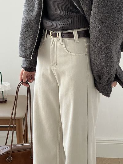 ヴィンテージ フリース ストレートジーンズ レディース 2024 秋冬 新作 ハイウエスト 9分丈 ジーンズ ストレートレッグ ワイドパンツ