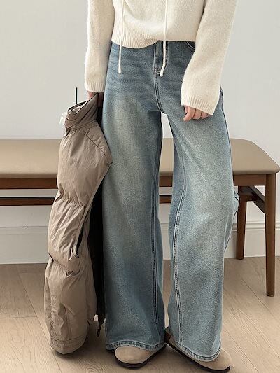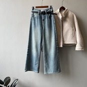 ハイウエスト ストレート ワイドジーンズ レディース 2024 秋冬新作 ゆったり ジーンズ パンツ ベルト付き