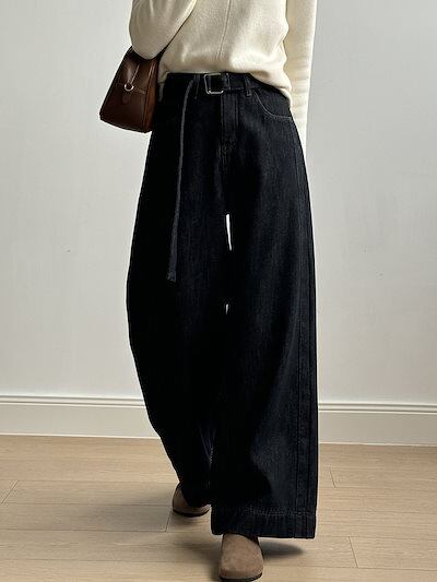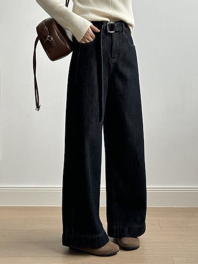 暖かい パッド入り ストレートジーンズ レディース 2024 冬 ハイウエスト カジュアル ワイドパンツ ベルト付き