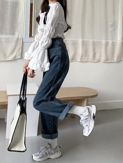 人气 新作 デニムパンツ ブルー ワイドパンツ ジーンズ レディース 24 スタイル ルーズ ストレートパンツ