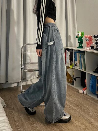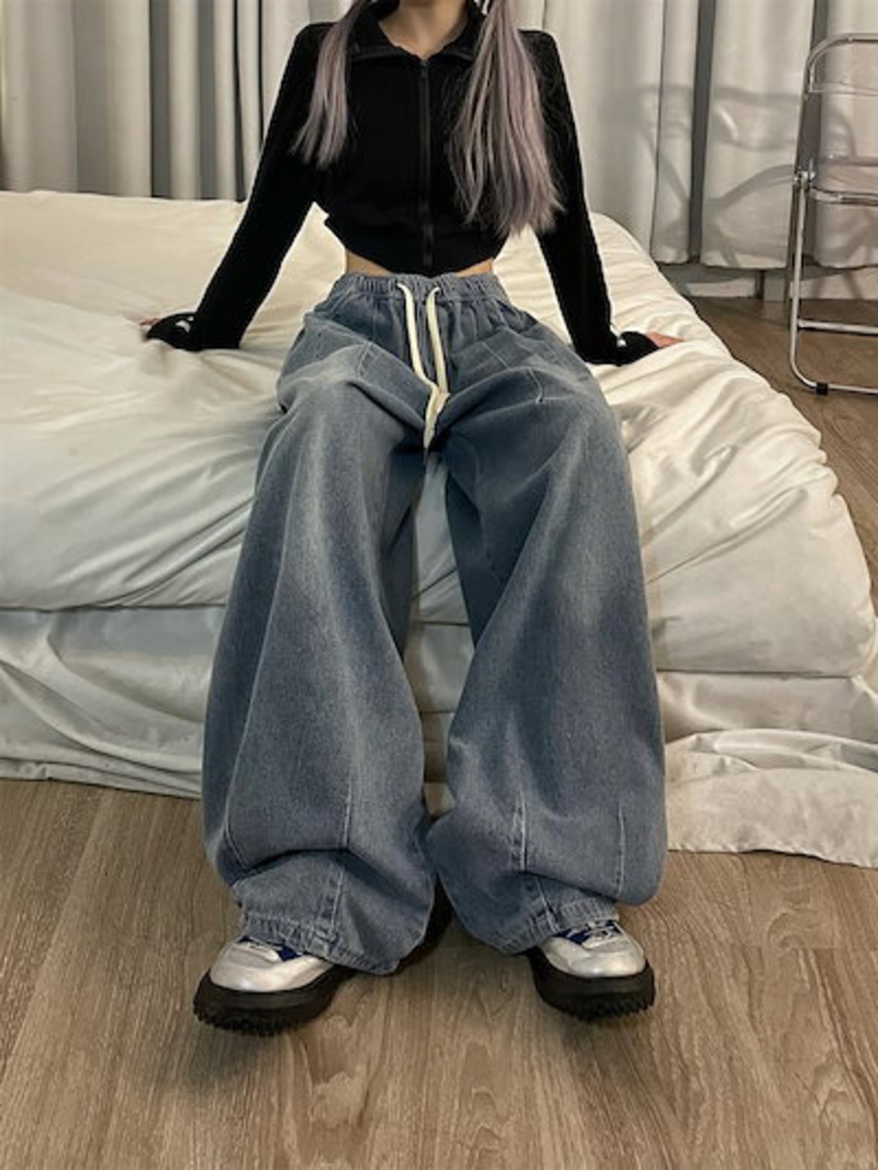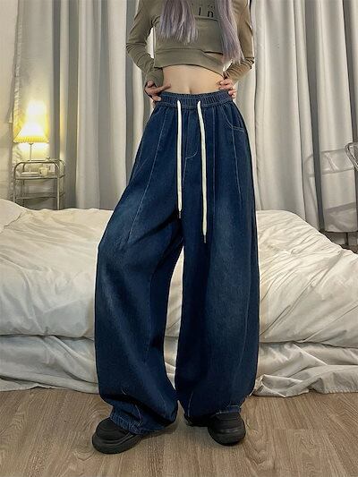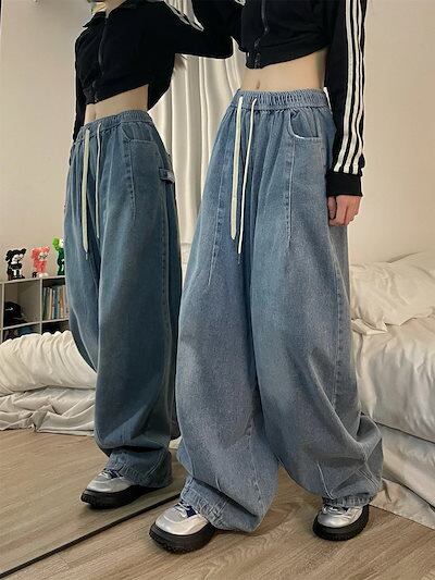 デニムパンツ スラックスパンツ レトロ ジーンズ デニム ワイドパンツ ゆったり ハイウエスト 怠惰風 垂れ感 着痩せ ズボン 凉しく 快適 プリーツ レディース ズボン