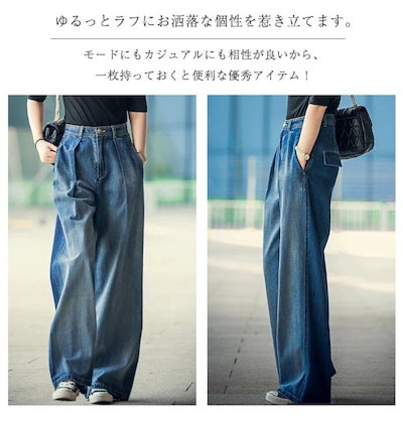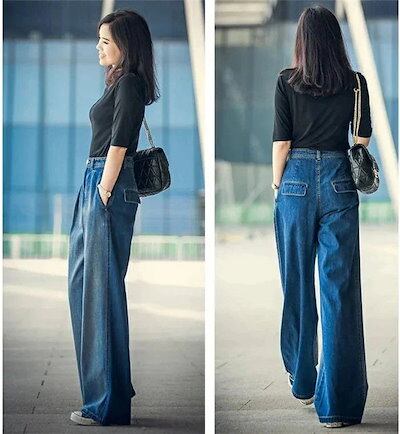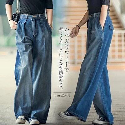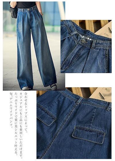 ワイドパンツ ガウチョパンツレディース デニム デニムパンツ 無地 ワイドパンツ 体型カバー