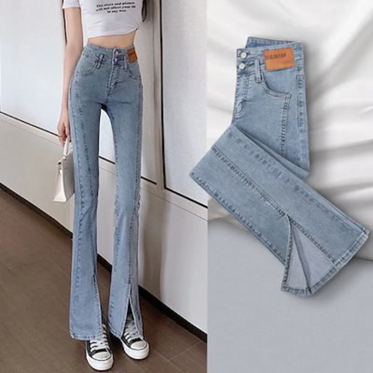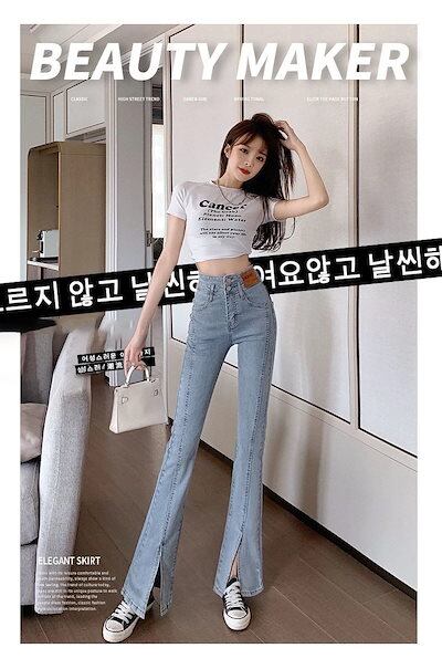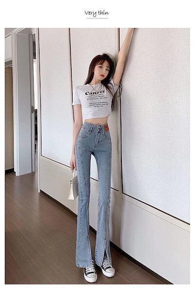 新作 レディース デニムパンツ ジーンズ ロングパンツ ストレートレッグジーンズトワイドパンツ 02