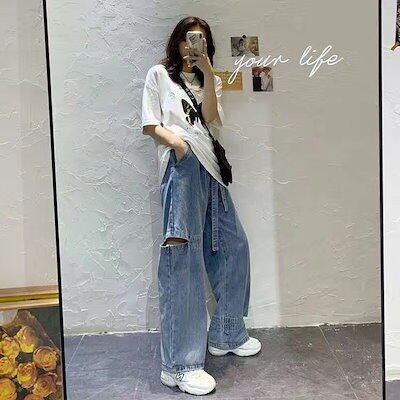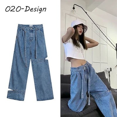 新作 レディース デニムパンツ ジーンズ ロングパンツ ストレートレッグジーンズトワイドパンツ 14