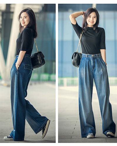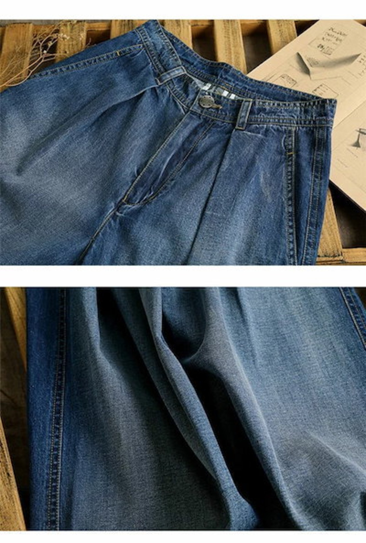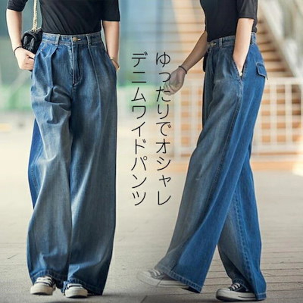 ワイドパンツレディースデニムパンツロング丈ガウチョウパンツボトムスデニムパンツロング丈ポケット付き大きいサイズゆったり楽ちん無地綿カジュアル