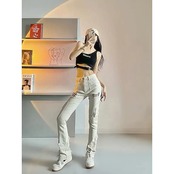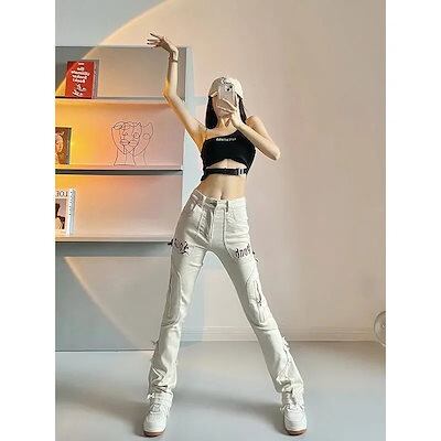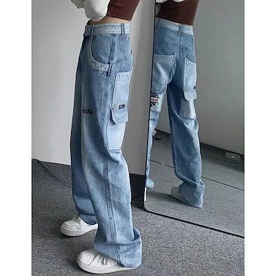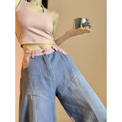 ジーンズ レディース アメリカン レトロ ニッチ デザイン ルーズ ストレート ワイドレッグ パンツ