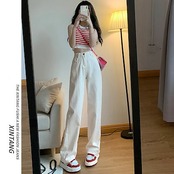 デニムボトムス ホワイト ハイウエストワイドデニム 女性 小柄 ゆったりストレートドレープパンツ ジーンズ ボトムス レディース 美脚 デニムパンツ