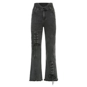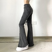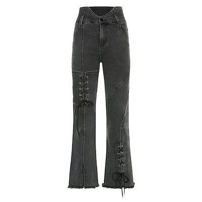 デニムボトムス ジーンズ ニッチデザイン レースアップ ジーンズ レディース イン ファット ハイウエスト スリム スリット ワイドパンツ