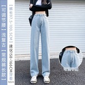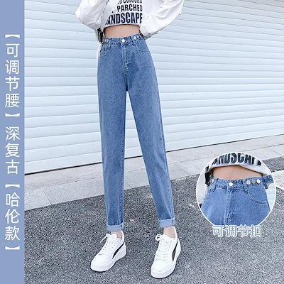ジレンズ脚長効果 ジーパンレディース ストレートジーンズ ハイウエスト ゆとりがある ワイドパンツ ラッパズボン 調整可能 スキニージーンズ ジーパン