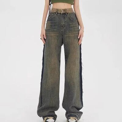 3日以内出荷脚長効果デニムパンツ オールドファッション ウォッシュ ワイドパンツ レディース 床丈のズボン ドレープ ズボン 韓国ファッション