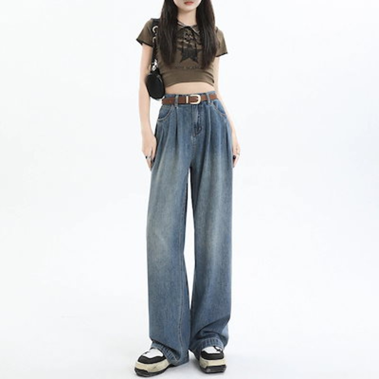 3日以内出荷脚長効果デニムパンツ ワイドパンツ レディース ハイウエスト お腹 薄手 ドレープ ゆったり 多用途 韓国ファッション