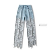 24 ハイウエスト 韓国 レディース デニムパンツ ボトムス ワイドレッグ ゆるダボ ジーンズ ゆったり カジュアル ストリート カットオフ肌見せ ファッション系