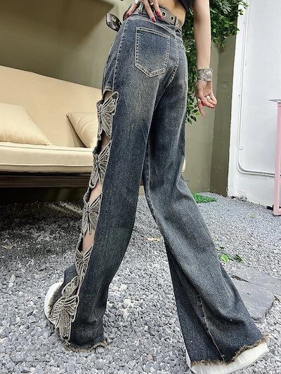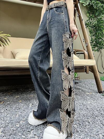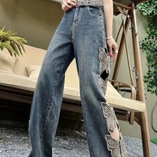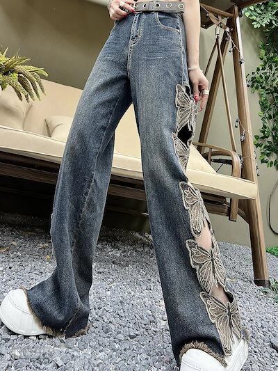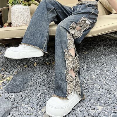 24 ハイウエスト 韓国 レディース デニムパンツ ボトムス ワイドレッグ ゆるダボ ジーンズ ゆったり カジュアル ストリート 切りっぱなしカットオフ肌見せ ファッション系