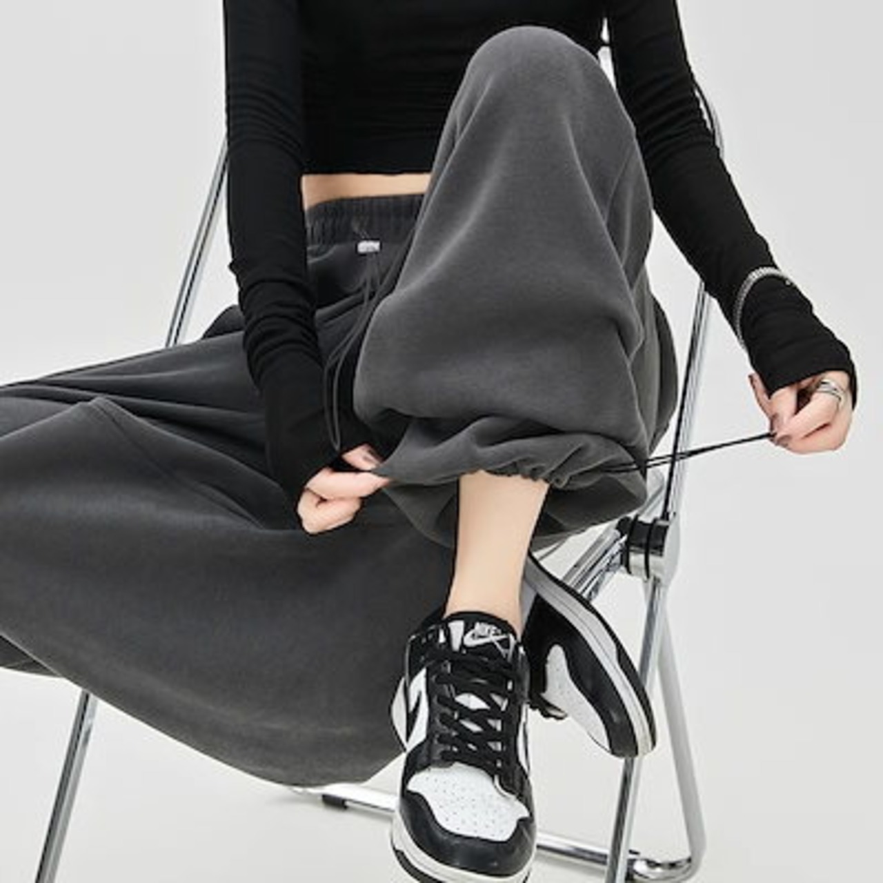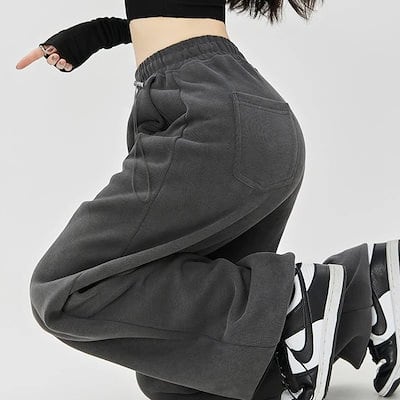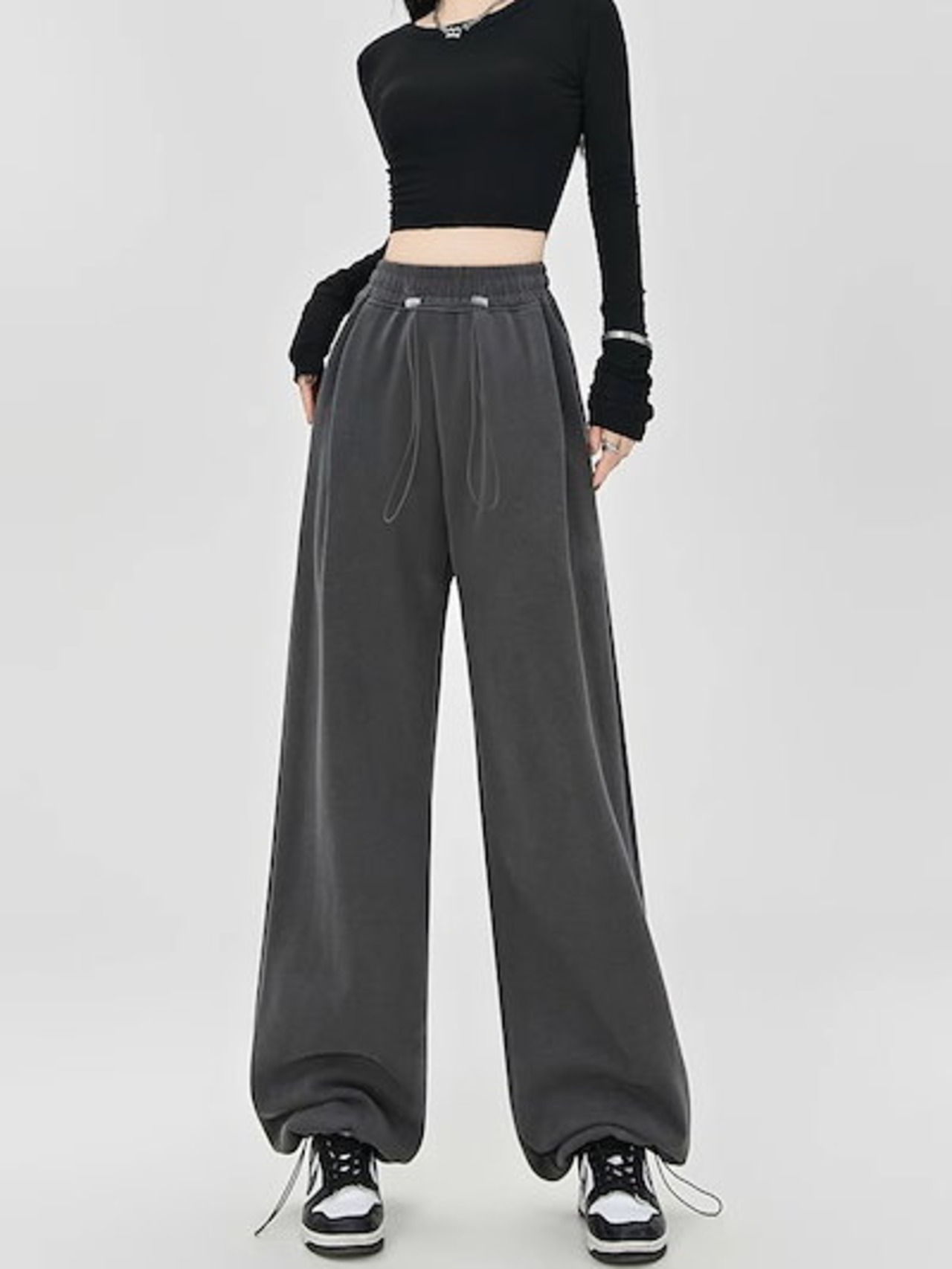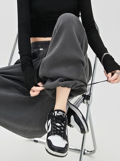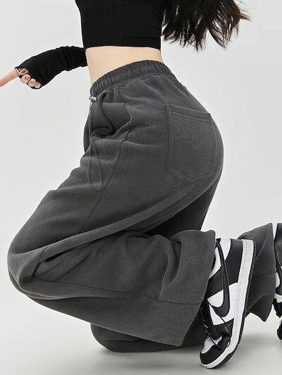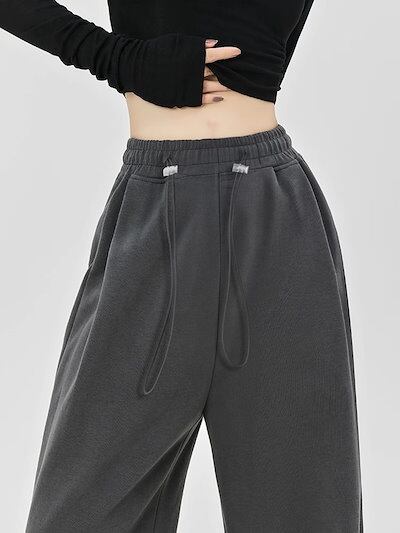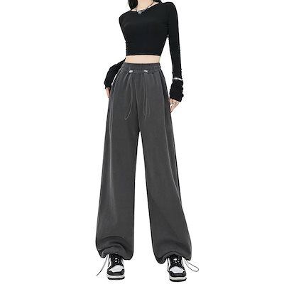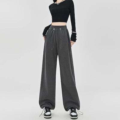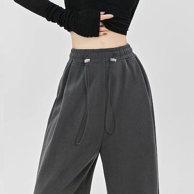 人気グレーのスポーツパンツ レディース春秋2024新作スモールサイズドローストリングルーズカジュアルハイウエストスウェットパンツ ワイドパンツ