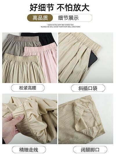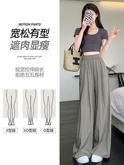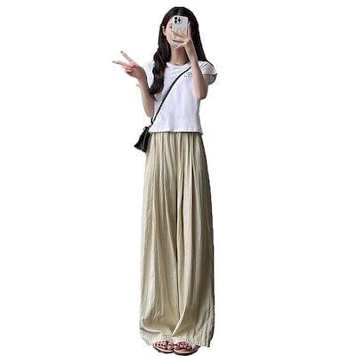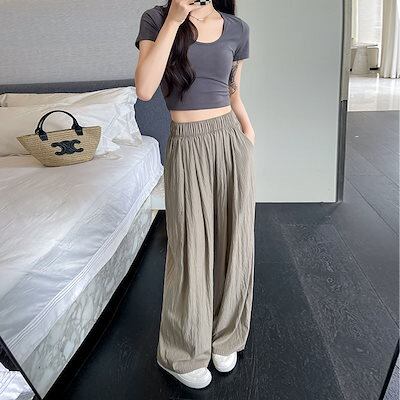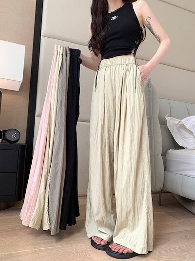 人気アイスシルクワイドパンツ レディース夏用薄手ドレープストレートルーズコットンリネンドラッグパンツ カジュアルクールヤマモトパンツ