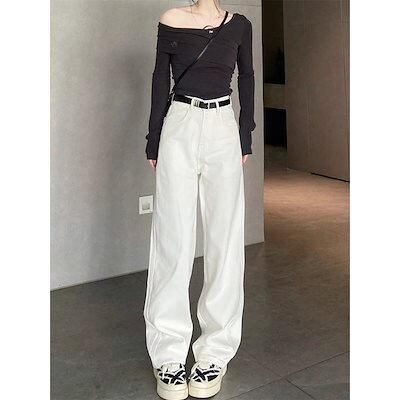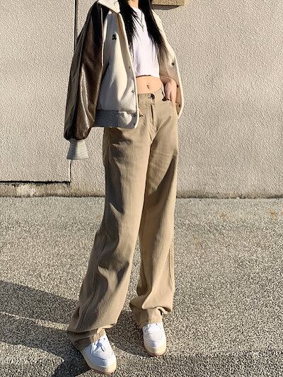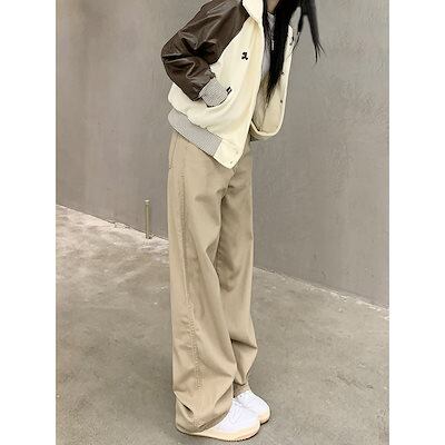 ワイドパンツ 韓国ファッション カーキ色のゆったりワイドパンツレディース冬2024新作ハイウエスト着やせ百合ストレートロングパンツ