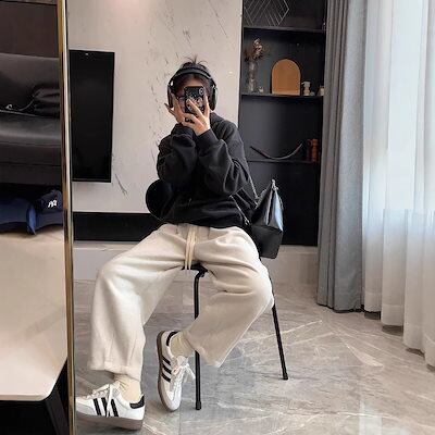 快適な ワイドパンツ レトロ ハロンパンツ ゆったり秋冬 カジュアル レディース 体型カバー ファッション OL 通勤