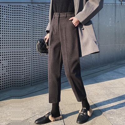 快適な ワイドパンツ 秋冬 ゆったりカジュアルハレンレディース 体型カバー ファッション OL 通勤 ラシャスーツパンツ