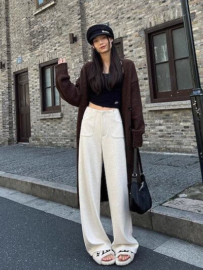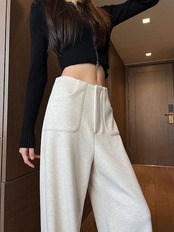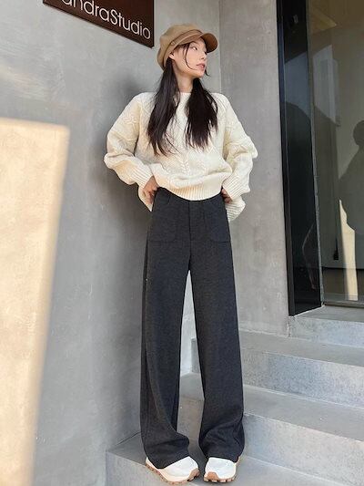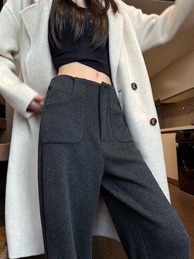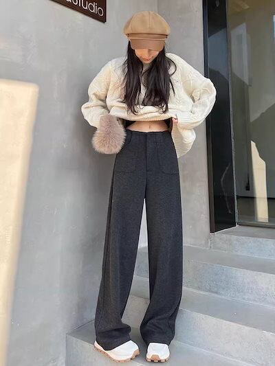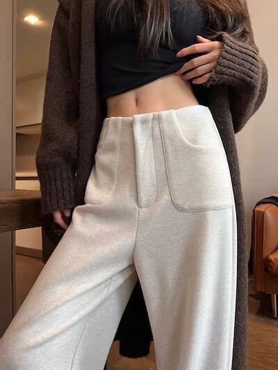 ホワイト ハイウエスト ワイドパンツ 裏起毛ラシャスーツパンツ 秋冬 カジュアルストレートパンツ ワイドパンツ レディース 防寒 OL 通勤