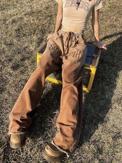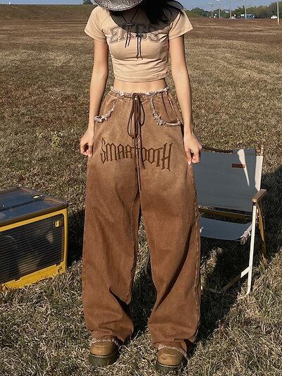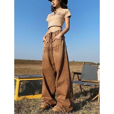 かっこいい!スラックスパンツワイドパンツ レトロ ニッチデザイン ジーンズ 着痩せ グラデーション カジュアル ズボン モッピングパンツ レディース ズボン