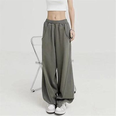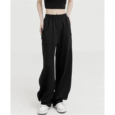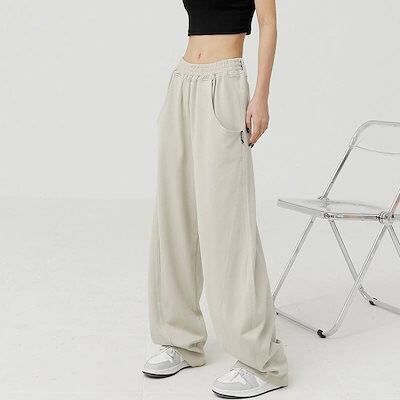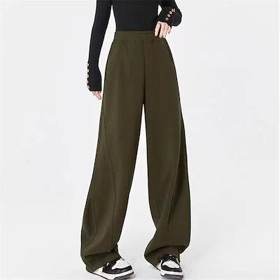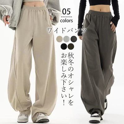 ワイドパンツ レディース パンツ カーブパンツ スウェット ウエストゴム ジャージ スウェット ゆったり 体型カバー 着痩せ 脚長効果 秋冬
