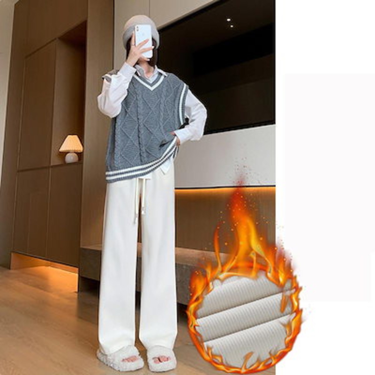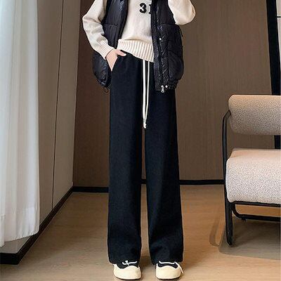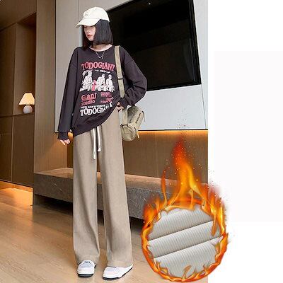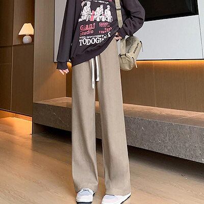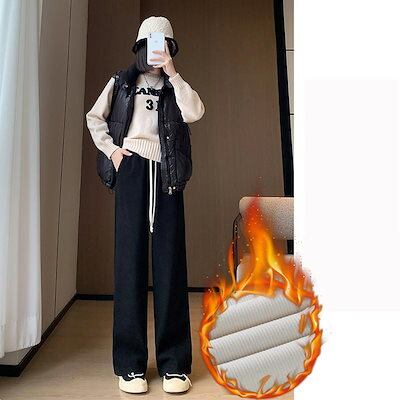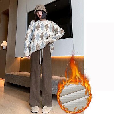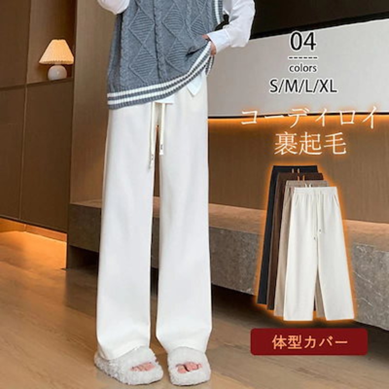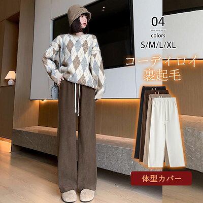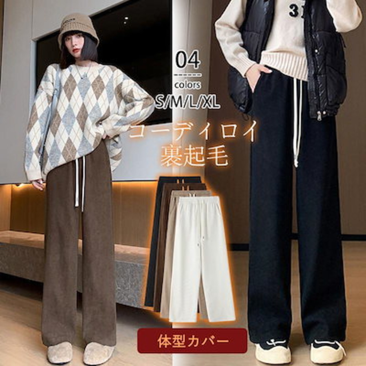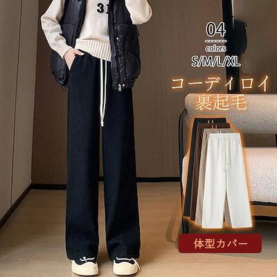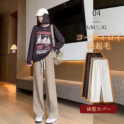 ワイドパンツ レディース コーデュロイ リブ 裏起毛 ボア ガウチョパンツ ボトムス ウエストゴム ロングパンツ 体型カバー 秋冬 通勤