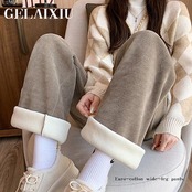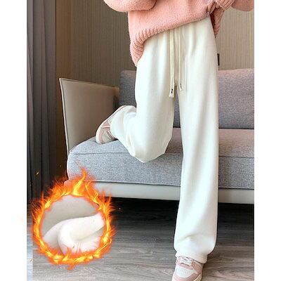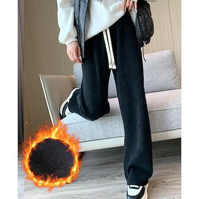 ワイドパンツ レディース パンツ ボトムス ストレッチ リブ コーデユロイ 保温 厚手 カジュアル 通勤 オフィス 体型カバー 脚長効果 秋冬