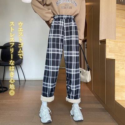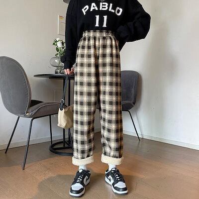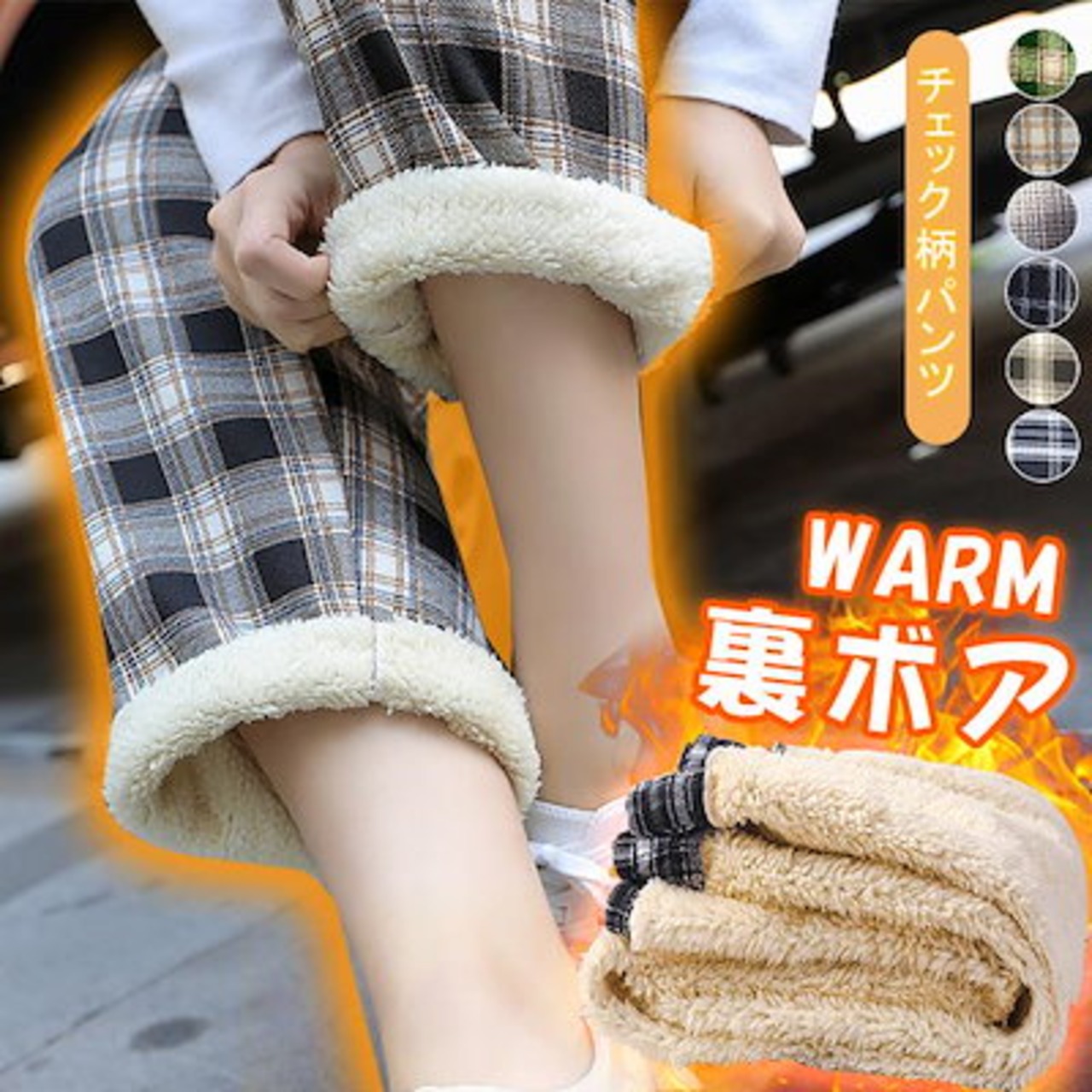 全品Point10倍!最大倍率50% 裏起毛チェック柄ワイドパンツ レディース 裏起毛 もこもこ 温か 防寒 チェック柄 ワイドパンツ カジュアルパンツ デイリー