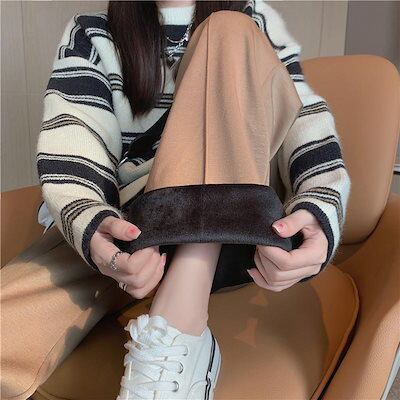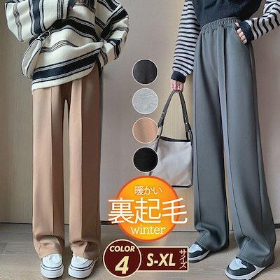 ガウチョパンツ レディース ワイドパンツ 裏起毛 ズボン ボトムス ハイウエスト 無地 普段着 カジュアル ゆったり 着痩せ ストレート ストリート系