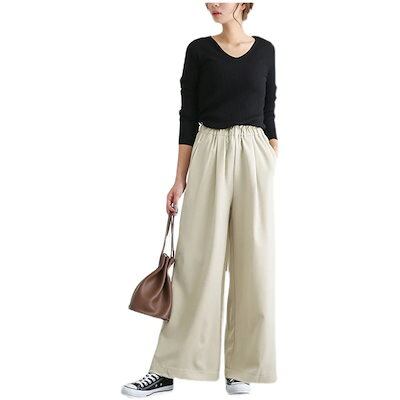 レディース タックパンツプリーツリラックス ゆったりリラック スガウチョ パンツスーツ ワイドパンツ ボトムス