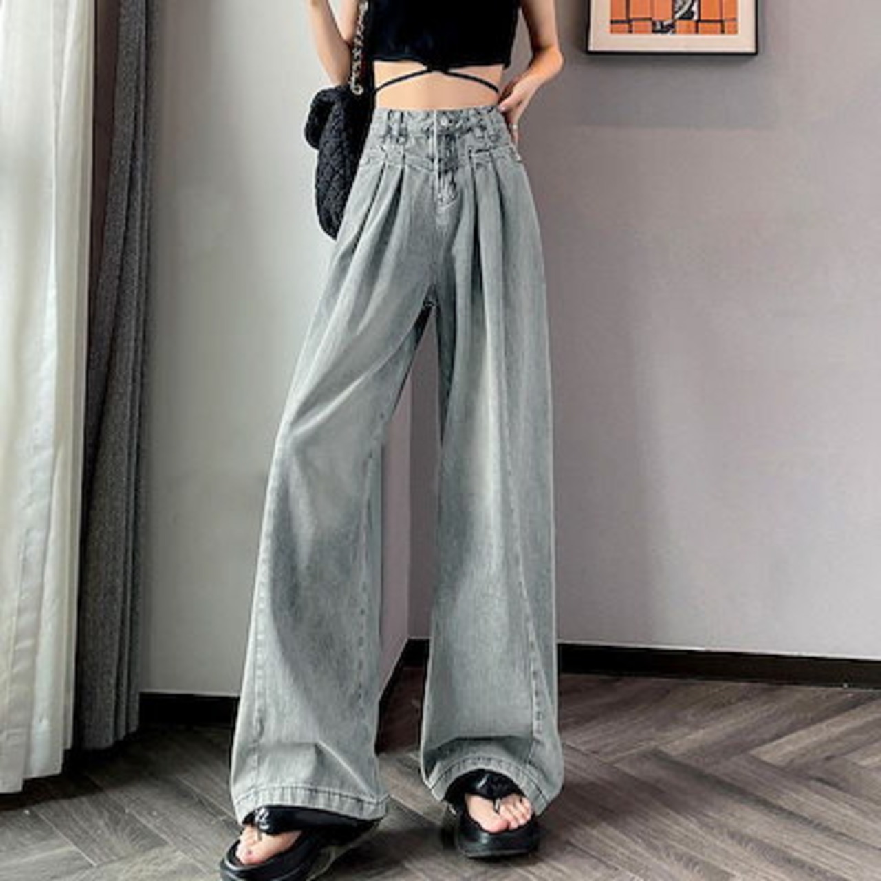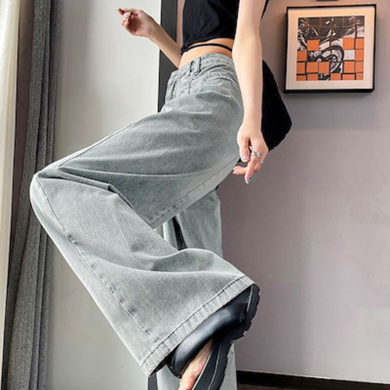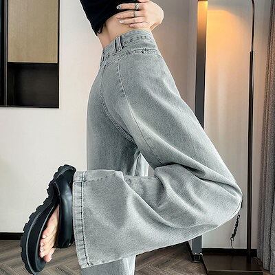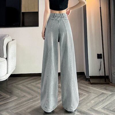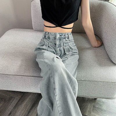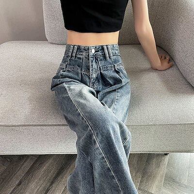ストレートジーンズレディース春秋新作アメリカンレトロで痩せ見えゆったりモップ地のハイウエストワイドパンツ