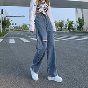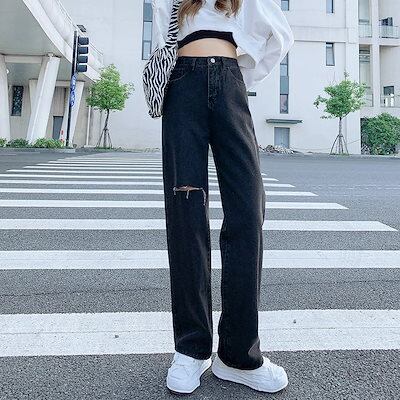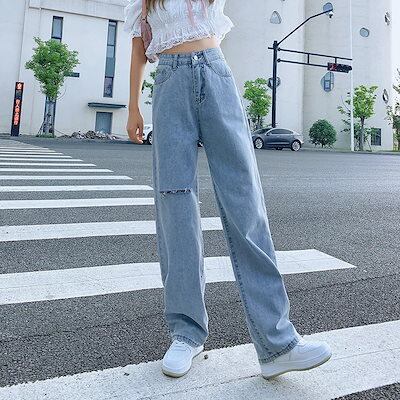 2024 秋先取 ブラウス 今っぽシアーシャツスラックスパンツデニムパンツ新型 薄いジーンズはのゆったりしたシンプルなストレートズボンです ワイドパンツ ボトムス トップス レディース 韓国ファッシ