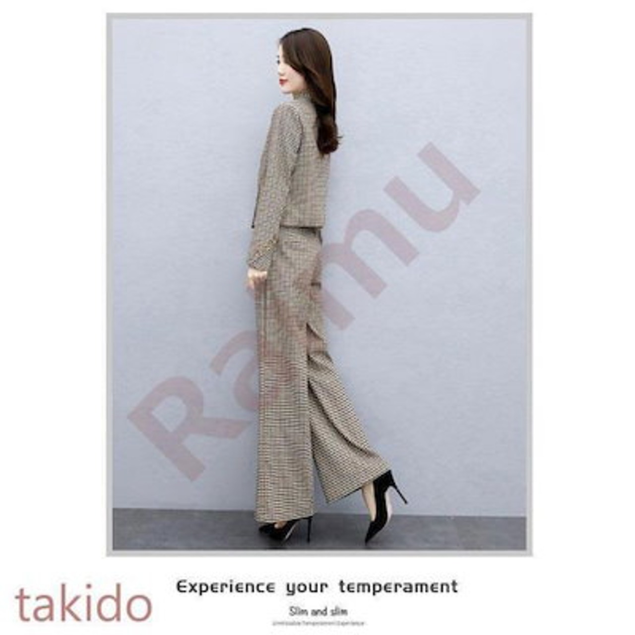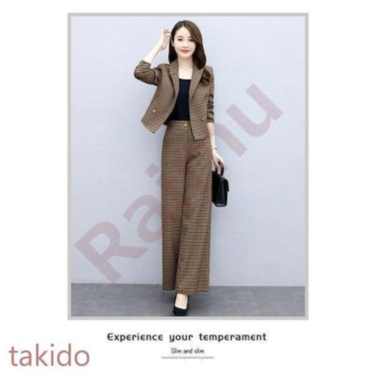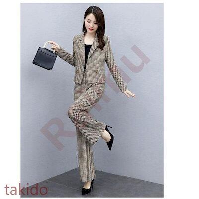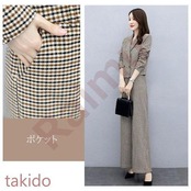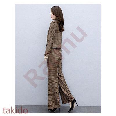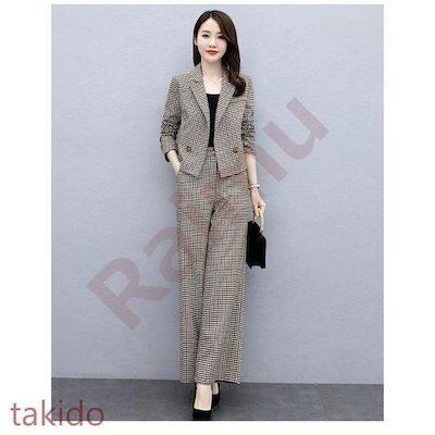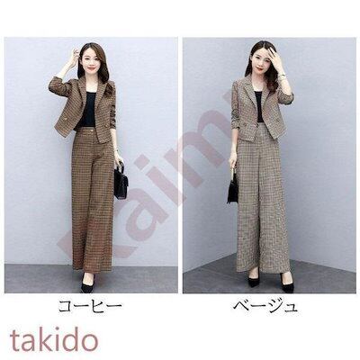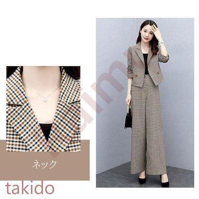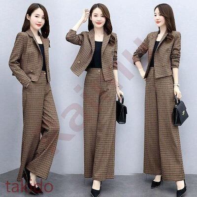 セットアップ レディース 40代 秋冬新作 長袖スーツジャケットチェック柄 ワイドパンツ 2点セット 通勤 フォーマル カジュアル オシャレ 上品 大きいサイズ