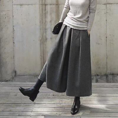 新品 春服 春秋冬 フレアパンツ スカーチョ ワイドパンツ レディース キュロットパンツ タック ガウチョパンツ スカンツ ウール 防寒 保温 イージーパンツ 大きいサイズ 韓ファッション